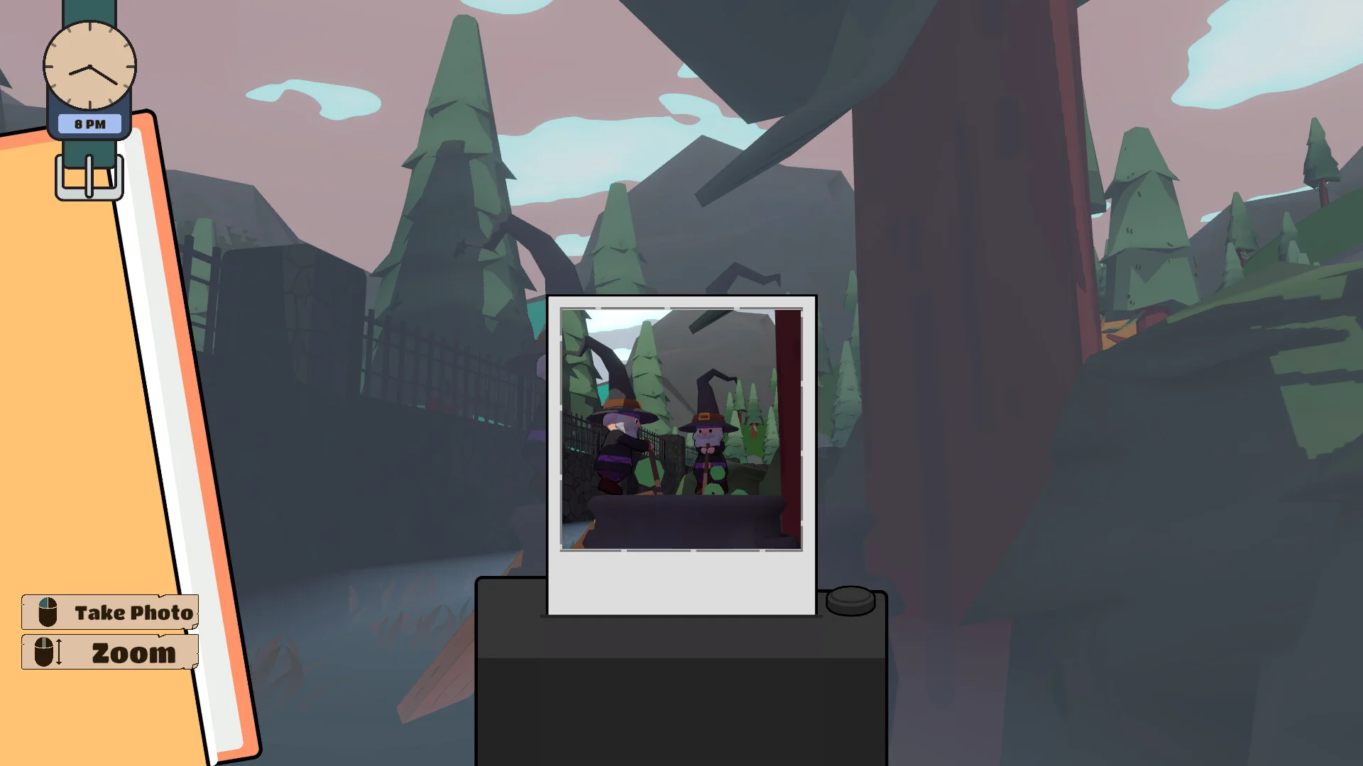 本作のゲームプレイの中心となるのは、カメラを使った証拠集めと、ジャーナル(手帳)への記録です。村を探索しながら、気になる光景や怪しい人物をカメラで撮影していきます。撮影した写真はポラロイド風に画面に表示され、レトロで温かみのある雰囲気を演出しています。