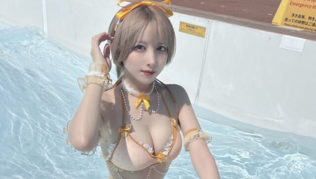 金髪ショートが眩しい! 堕天ろあ、プールサイドでの大胆水着姿で初万バズ達成!