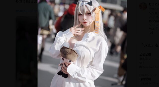 冬の屋外撮影も素敵! むうにゃ、『勝利の女神:NIKKE』モダニアの彼シャツコスプレを披露