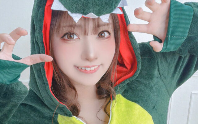 可愛さ全開! 有川紗雪、緑の恐竜きぐるみで楽しくポーズ決める