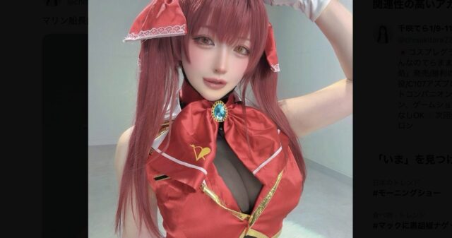 赤い船長、セクシーさ全開! 千咲てら、hololiveの宝鐘マリンのコスプレを披露