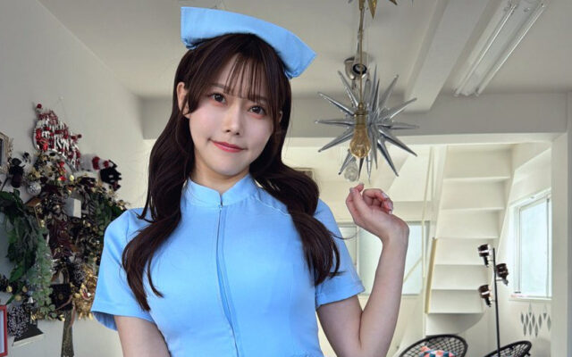 朝からドキドキ必至! 桃里れあ、スカイブルーのナース服姿で「おはうございます」