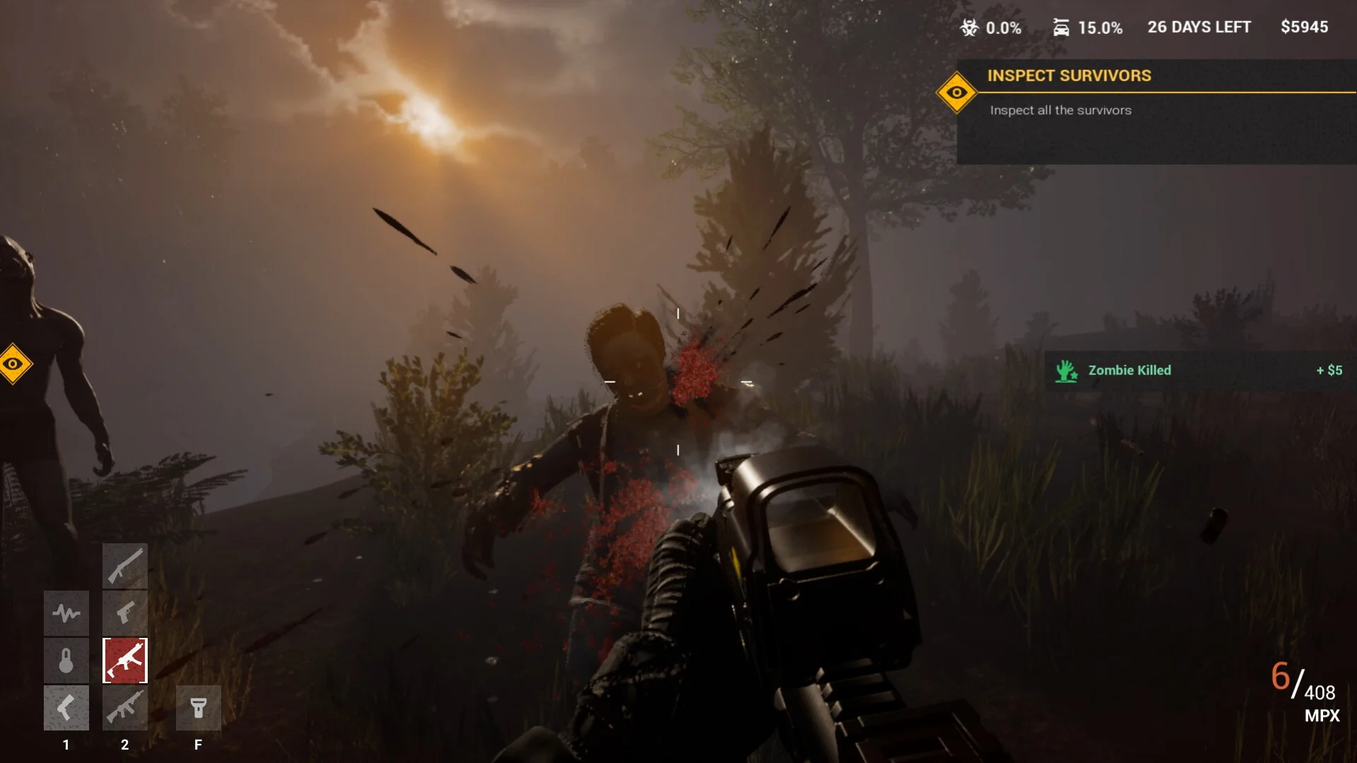 筋肉質で耐久力の高いタイプや、不気味な動きを見せるタイプなど、状況に応じた対処が求められます。射撃の反動や血しぶきの表現はリアルで、戦闘のフィードバックも明確です。ゾンビを倒すことで報酬を得られ、それを武器の購入や防衛の強化に使用できます。
