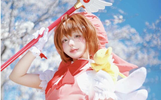 春満開のさくら色! 凸守たかね、『カードキャプターさくら』木之本桜の戦闘服姿を桜の背景で完全再現