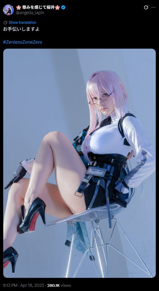 コスプレイヤーの尊みを感じて桜井さんが4月18日、「お手伝いしますよ」というコメントとともに『ゼンレスゾーンゼロ』のキャラクター「柳」のコスプレ写真をXで投稿しました。