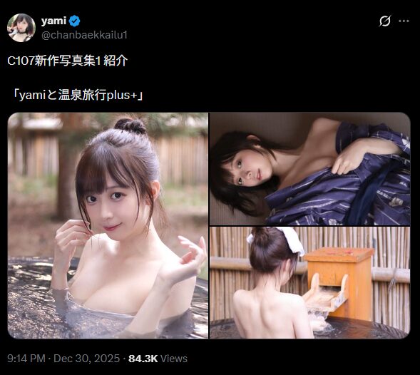 魔法少女・モデル・コスプレイヤーのyamiさんが12月30日、コミックマーケット107で新作写真集「yamiと温泉旅行plus+」の紹介をXで投稿しました。