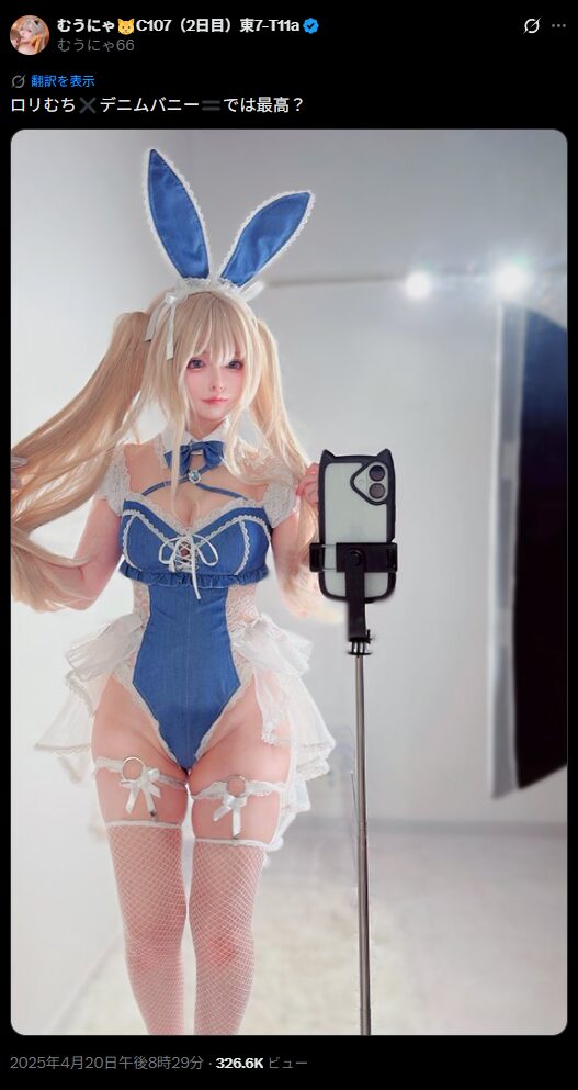 ファンからは「むうにゃさんのデニムバニーはやっぱり破壊力パネェっすね」、「最高😍😍😍😍😍😍😍」、「+可愛いで最強🥰」、「最高です……お顔もスタイルも好きすぎて……」、「金髪❌ツインも追加で最高😆💕」、「むうにゃちゃ✖️ロリむち✖️デニムバニー🟰最高&最強」、「めちゃくちゃ可愛すぎる…推しがフェチ着てるの最高すぎて…」といったコメントが寄せられていました。