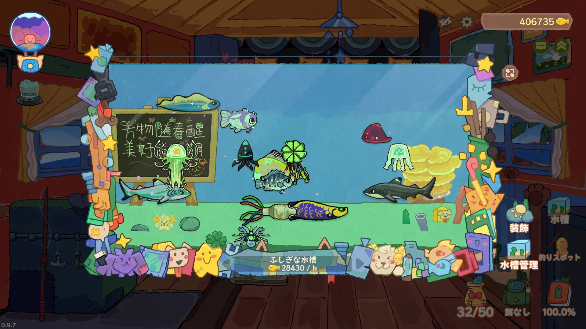 釣り竿の強化や水槽の拡張も可能です。より強力な釣り竿を手に入れれば、これまで釣れなかった大物や珍しい魚にも挑戦できるようになります。水槽を広げれば、より多くの魚を飼育でき、デコレーションの自由度も高まります。枝状の大きなオブジェを配置して水中林のような幻想的な空間を作ったり、カラフルなサンゴ礁をテーマにした明るい水槽にしたり。あなたのセンスが光る水槽カスタマイズを楽しんでください。