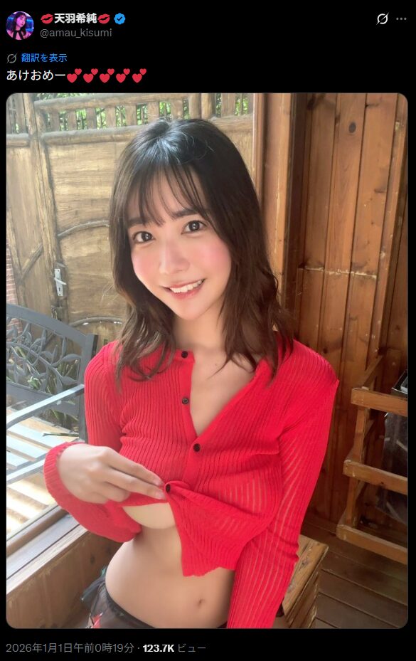 グラビアアイドルの天羽希純さんが1月1日、新年の挨拶とともにセクシーなニットトップス姿の写真をXで投稿しました。