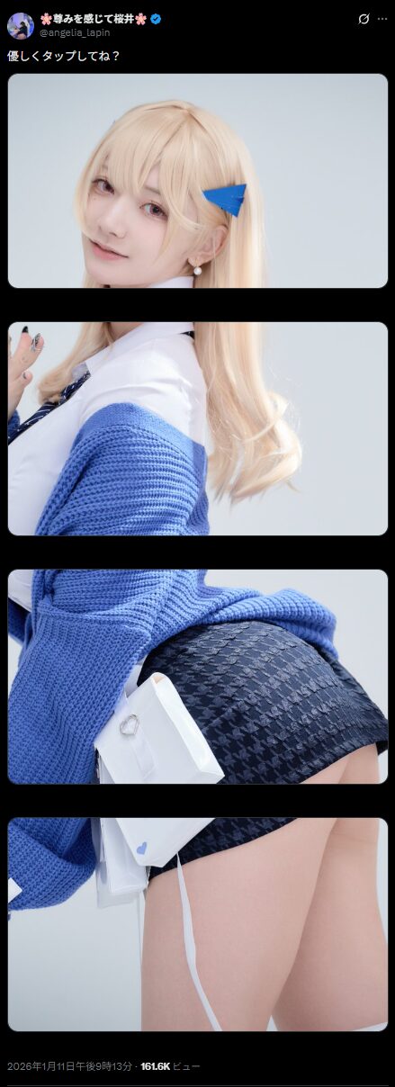 コスプレイヤーの尊みを感じて桜井さんが1月11日、スマートフォンゲーム『勝利の女神:NIKKE』のキャラクター【ティア】のコスプレ写真をXで投稿しました。