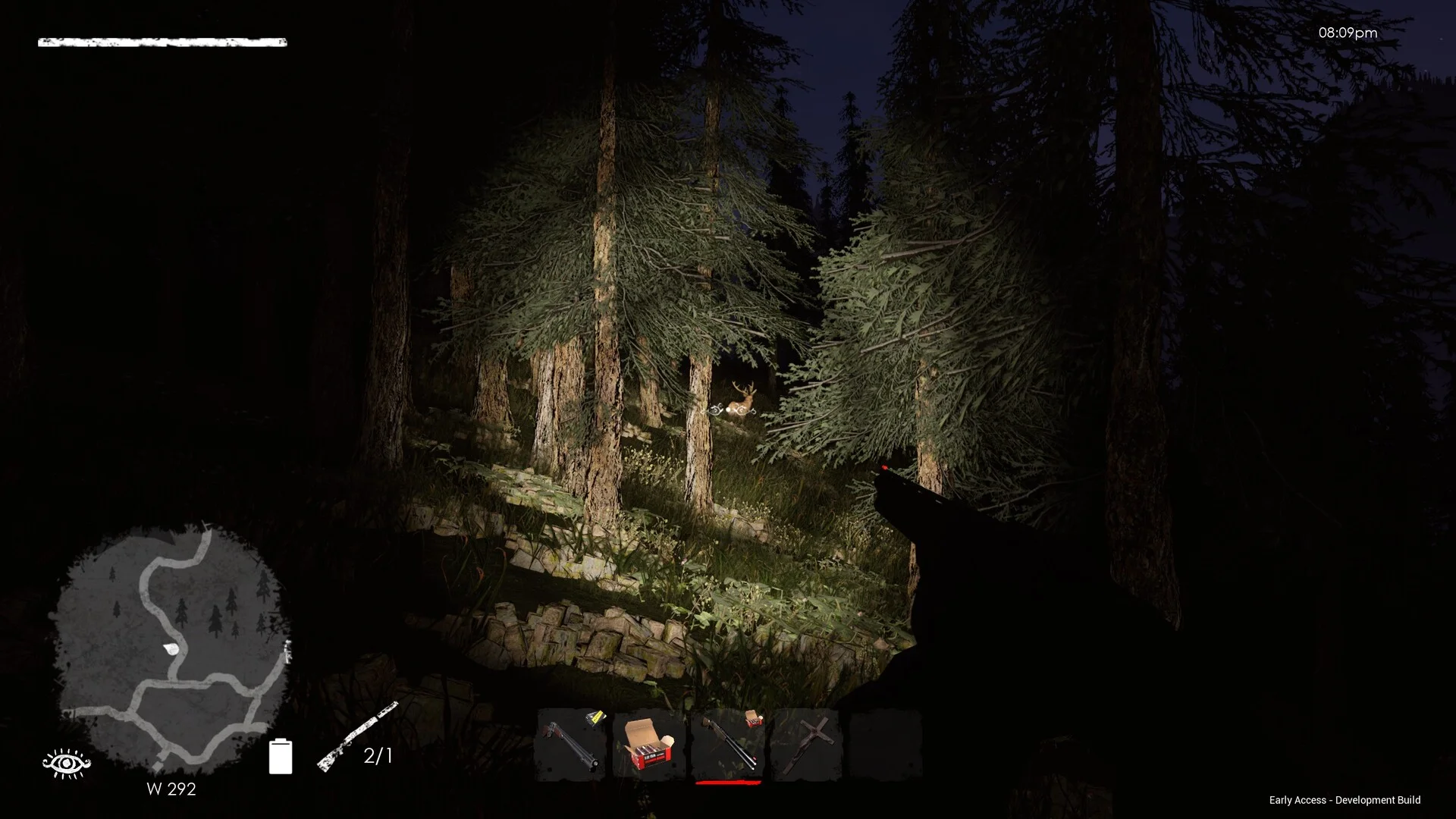 また、十字架のような特殊なアイテムも登場します。夜の森で遭遇する「Strigol」のような超常的な敵に対しては、こうした神秘的な道具が力を発揮するのかもしれません。暗闇の中での戦闘は緊張感に満ちており、プレイヤーは懐中電灯やフレア、ケミカルライトといった光源を活用しながら、闇に潜む脅威と戦うことになります。
