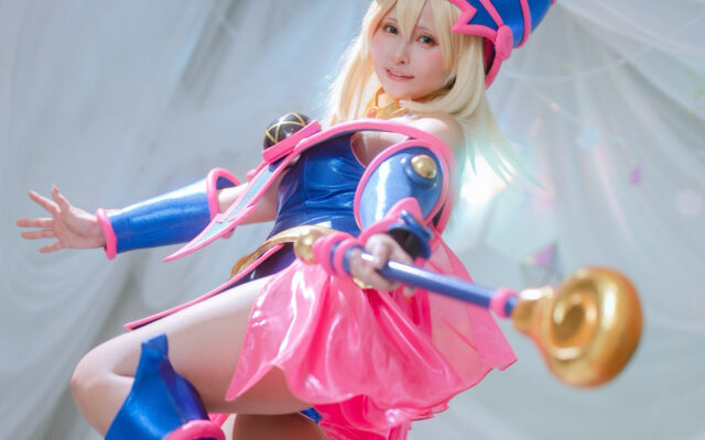 鮮やかなピンク×ブルーで大魔法! 天音ありぃ、『遊☆戯☆王』ブラックマジシャンガールのセクシーなコスプレを披露