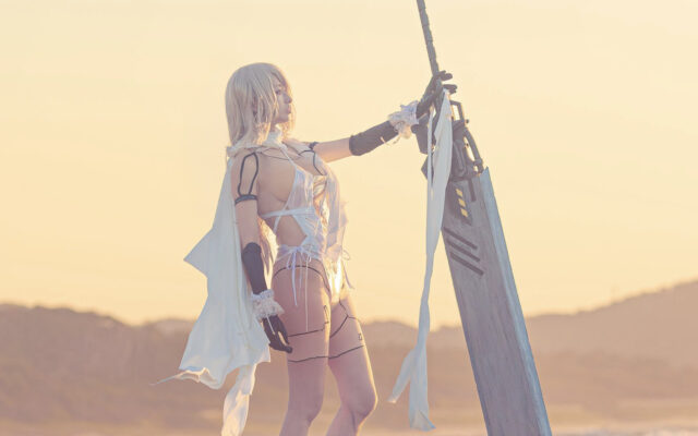クールな戦士姿が映える! はる、『勝利の女神:NIKKE』と『NieR:Automata』コラボコスプレを海で披露