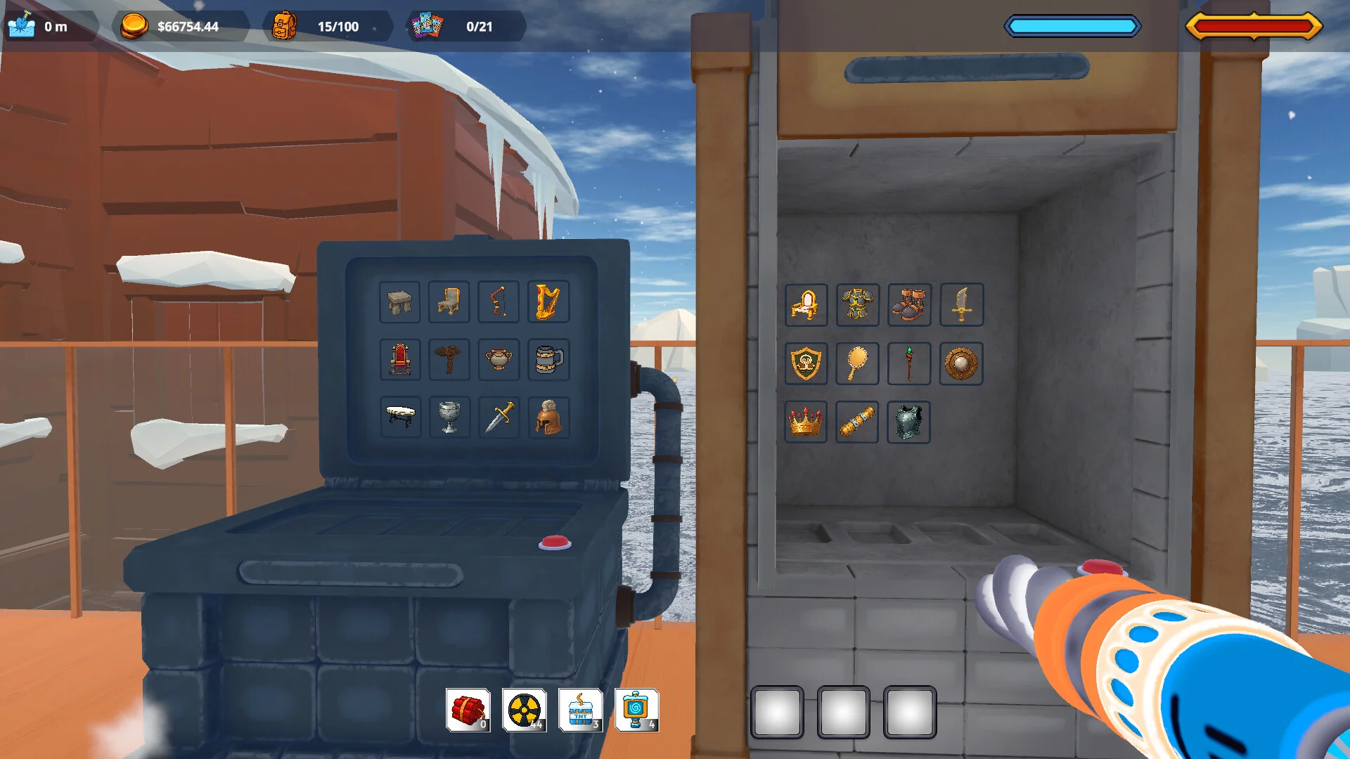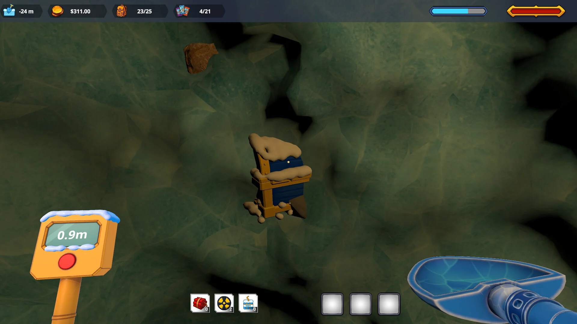 拠点にはユニークな施設も用意されています。スロットマシンのようなデザインの回復ステーションでは、探索中に減ってしまった体力やエネルギーを瞬時に回復できます。さらに、採掘を劇的に加速させる強力なアイテムも購入可能です。こうした施設を上手く活用することで、より効率的に採掘を進められるでしょう。