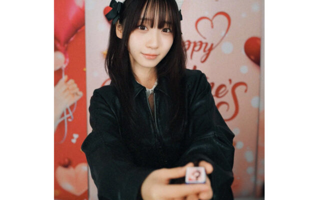 キュートなピンク耳で逆バレンタイン! れちゃん、虹色ホログラムドレスでバレンタイン投稿を公開