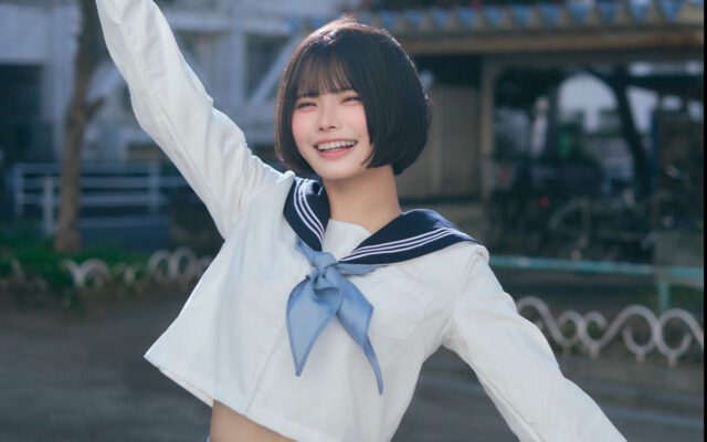 清楚感あふれるセーラー服! まめだいふく、爽やかな学園コスプレで笑顔を見せる