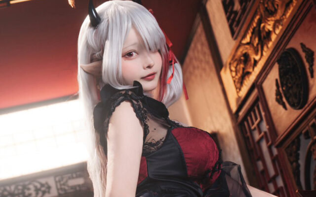 妖艶な鬼姿で魅了! すずら、黒×赤の和風衣装で鬼のコスプレを披露