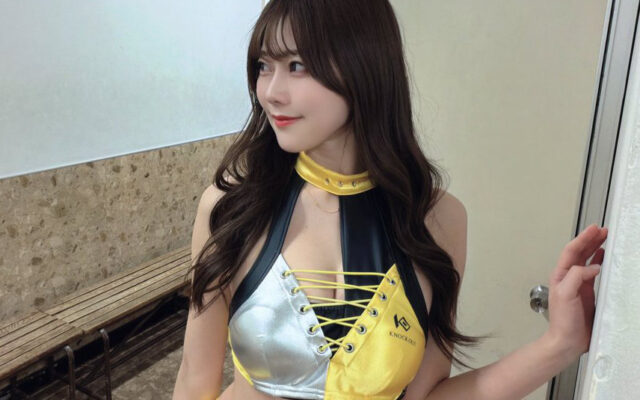 危険な魅力に目が釘付け! 桃里れあ、黄色×黒のセクシーな新衣装でKNOCKOUTラウンドガールの魅力全開