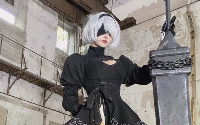 ドヤ顔で武器の持ち方を間違えちゃった! はる、『NieR:Automata』2Bの目隠しコスプレ写真を公開