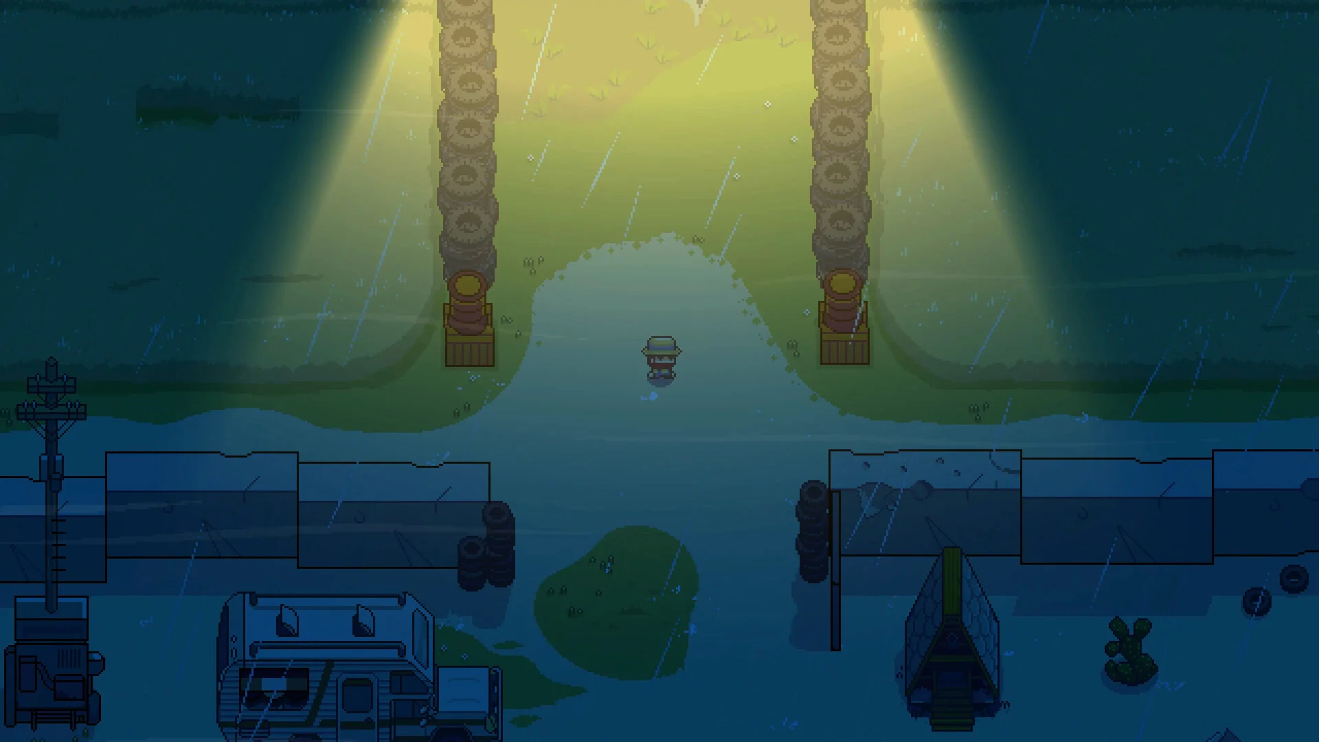 ステージの雰囲気も多彩です。機械的な通路が続くサイバーパンク風のエリアもあれば、荒廃した荒野のような牧歌的な場所もあり、探索しているだけでも飽きません。雨が降る夜の水辺を進むシーンのような、しっとりとした叙情的な演出も用意されており、ただの爽快アクションゲームにとどまらない奥行きを感じさせます。