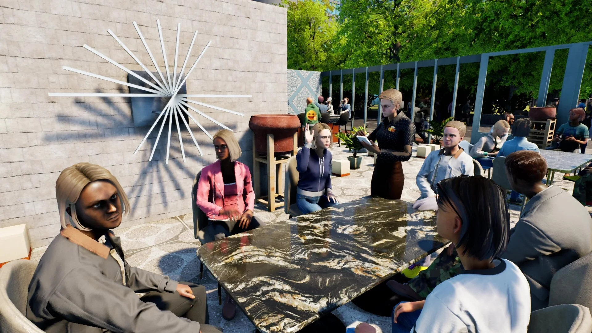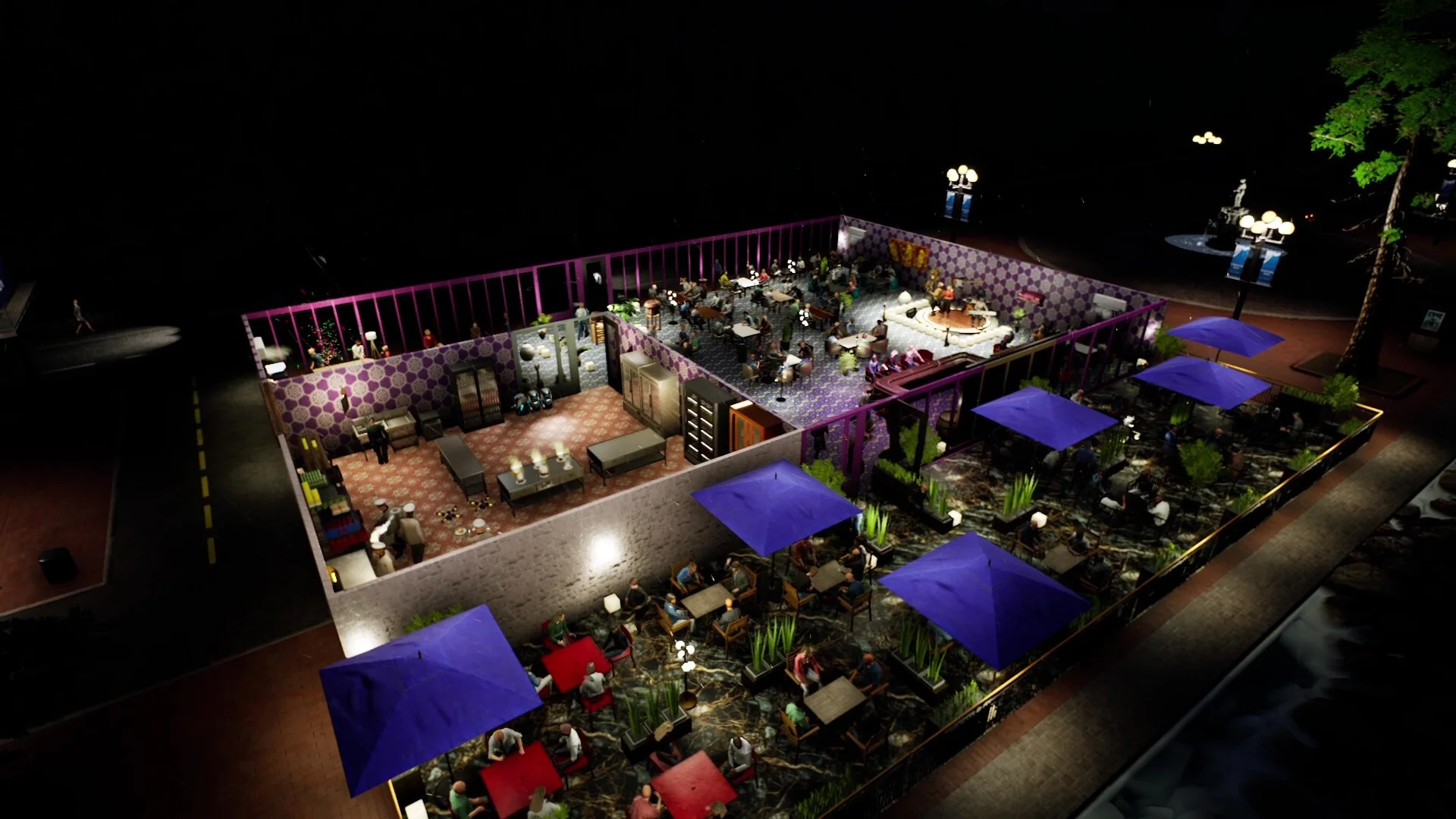 厨房ではシェフたちが実際に料理を作る様子が細かく描かれており、経営の「裏側」も楽しめます。さらにゲームが進むと、食材の仕入れや在庫管理を手伝うロボットや、デリバリーをこなすドローンといった最新テクノロジーも導入可能になる模様です。