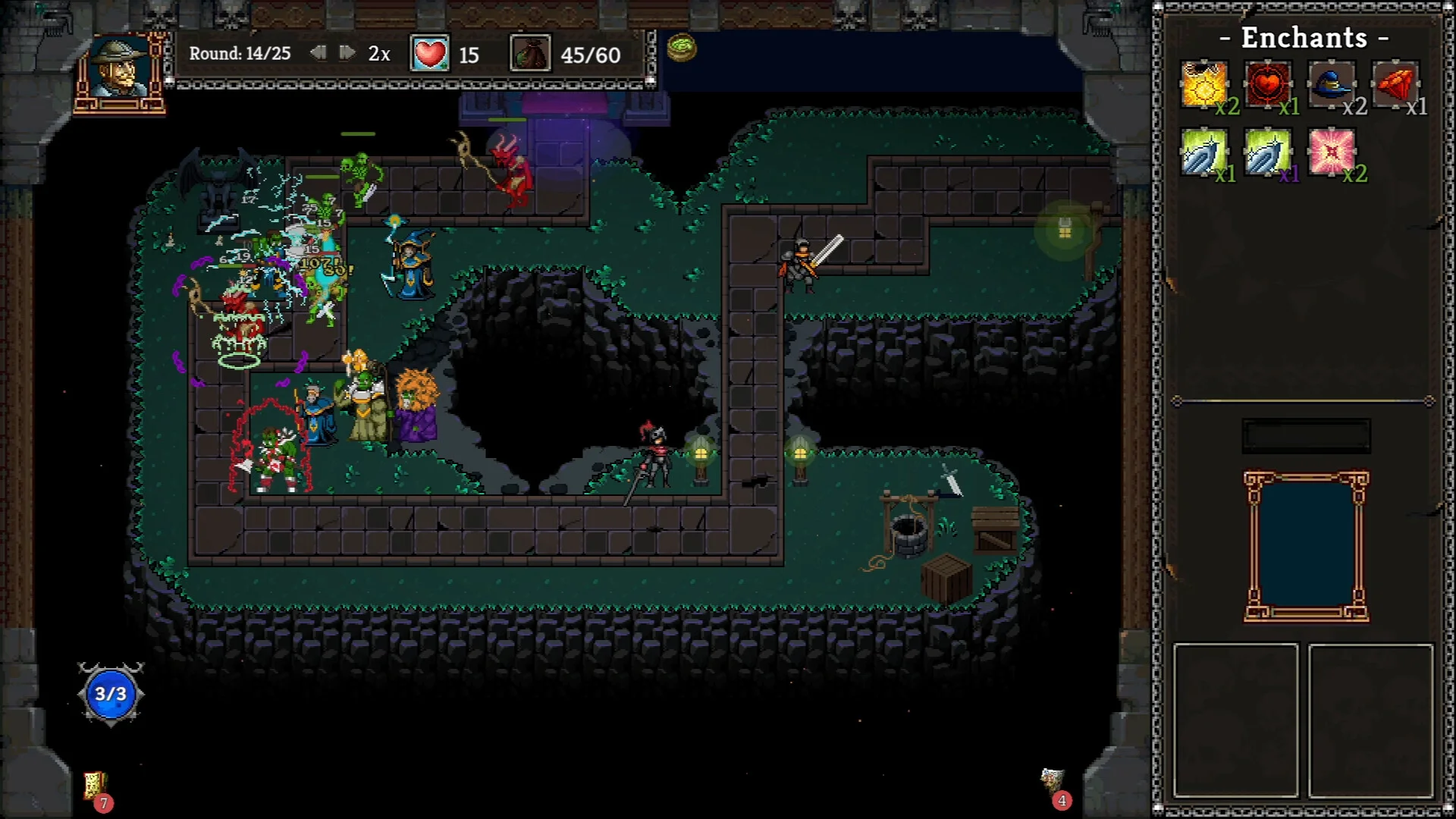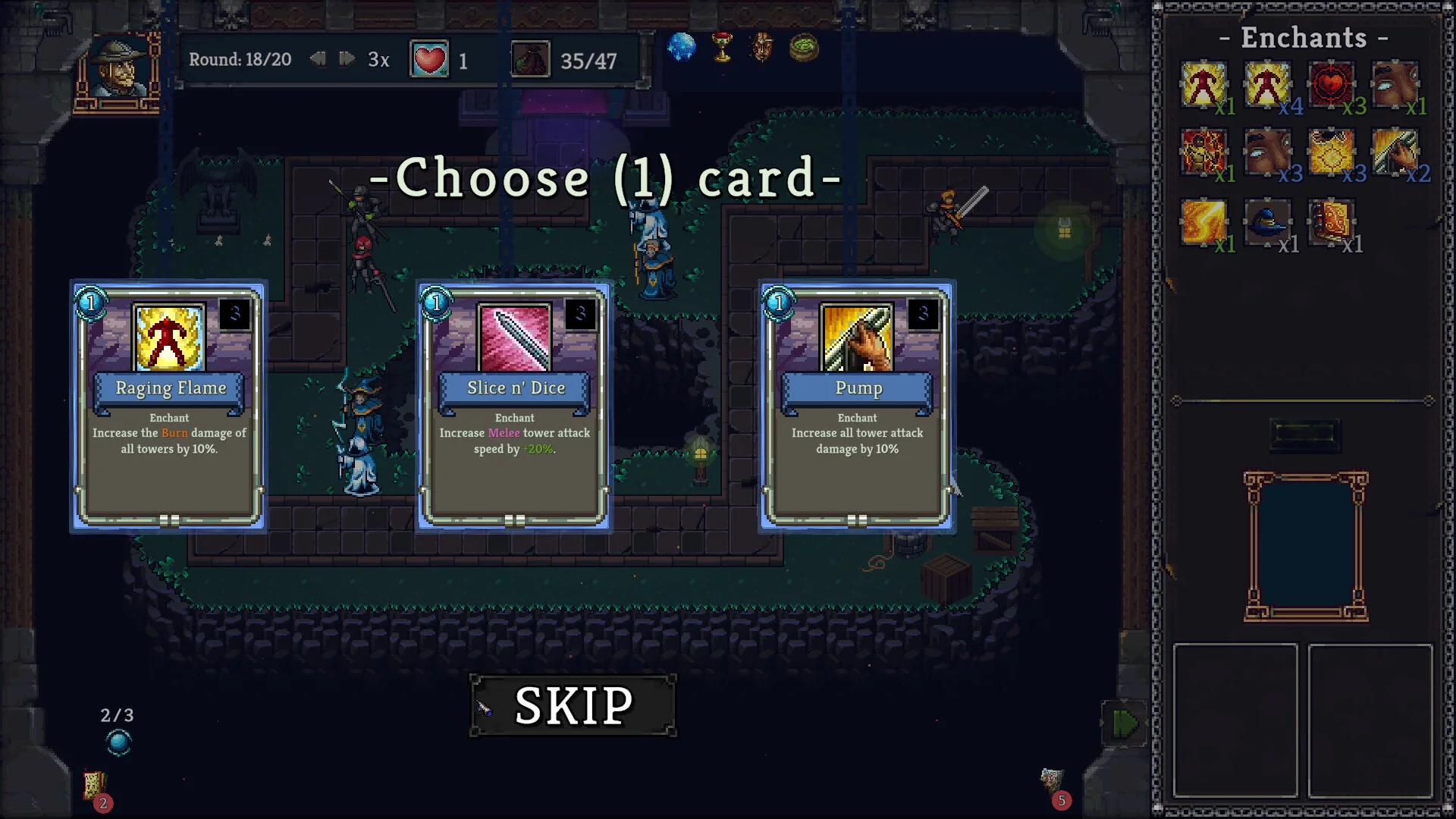 戦闘中には「エンチャント」システムが機能し、配置したタワーにさまざまな強化を施すことができます。全タワーのクリティカル率を上げたり、攻撃ダメージを底上げしたりと、エンチャントの組み合わせ次第で戦況を大きく左右する一手が生まれます。どのタワーにどのエンチャントを当てるか、考え始めると止まらなくなりそうです。