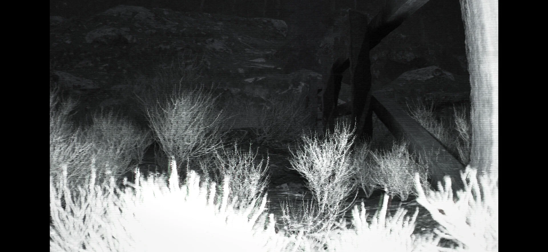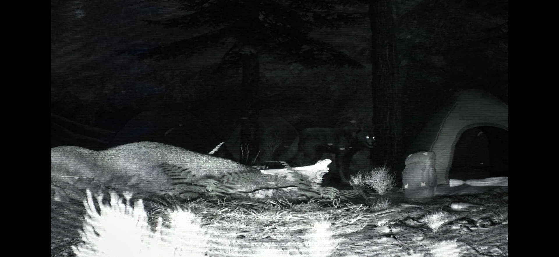 本作の肝となるのは、森の各所に設置されたトレイルカメラのネットワークです。プレイヤーはこれらのカメラからリアルタイムで映像を受け取り、疑わしい活動を監視・記録・報告していきます。ナイトビジョン越しに映し出される映像は粗くノイズが走っており、暗闇の中に何かが潜んでいるような感覚を絶えず与えてきます。草木の揺れ、岩場の影、森の奥に浮かぶ正体不明の何か。カメラが捉えたものが動物なのか、それとも別の何かなのかを判断するのはあなた自身です。