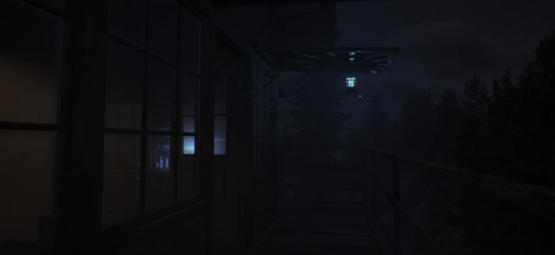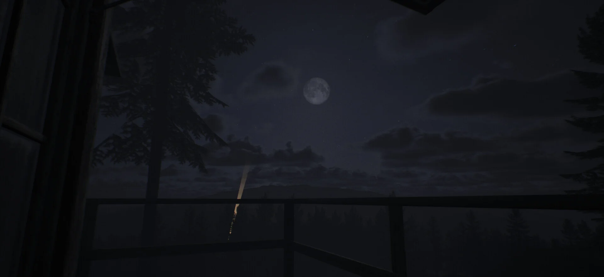 舞台となるのは、アパラチアの荒野の奥深くに建てられた孤立した遠隔監視塔。薄暗い室内には調査資料が所狭しと貼られ、デスクにはPCが置かれています。外には広大な夜の山岳地帯が広がっており、その静寂がかえって不気味な緊張感を漂わせます。