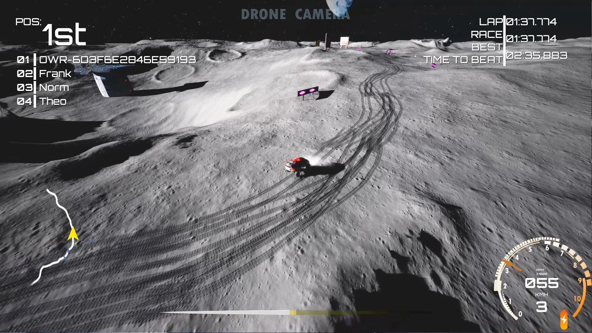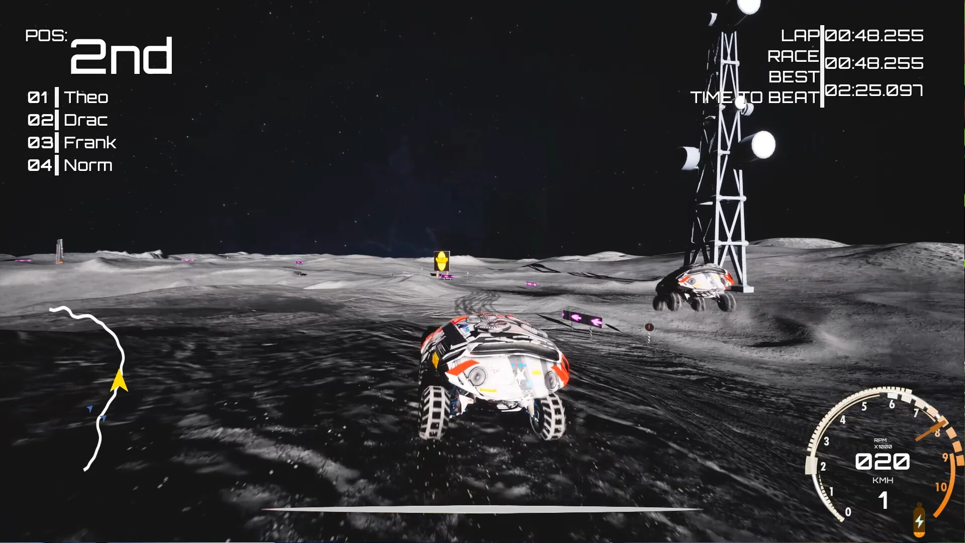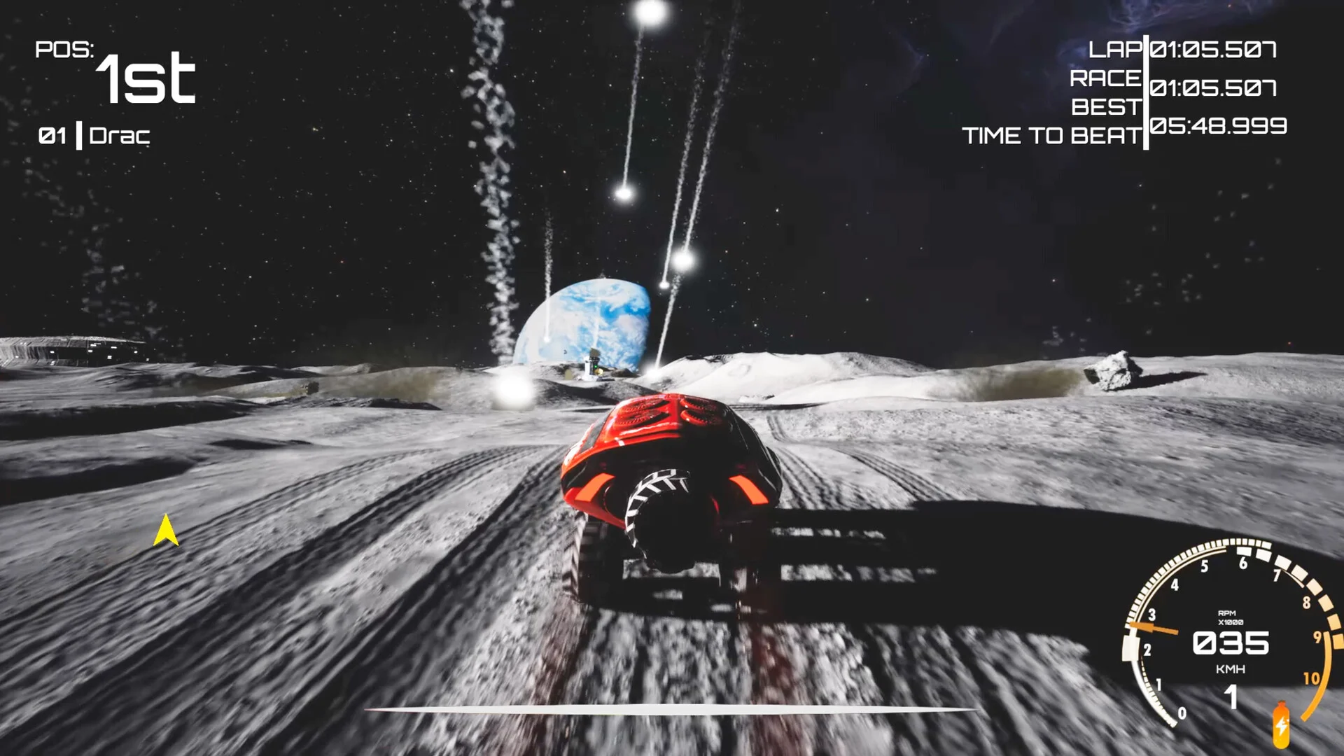 各惑星・衛星にはそれぞれ固有の環境が設定されており、月では低重力に翻弄されながらのコーナリングが求められ、火星では砂嵐の中をドリフトで駆け抜けることになります。