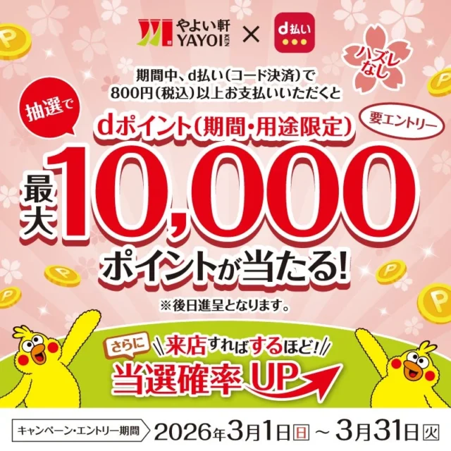 d払いでやよい軒がお得! 最大10,000ポイントが当たるキャンペーンが3月1日よりスタート