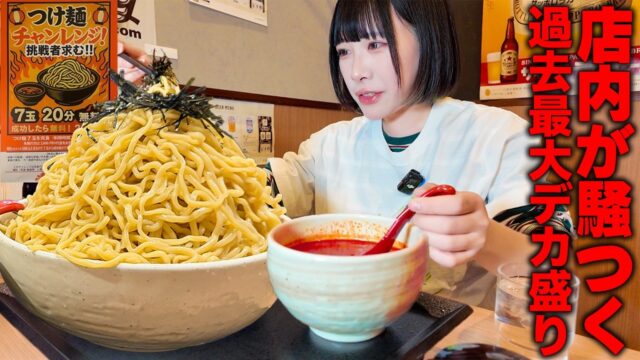 海老原まよい、特製ゴマ味噌ダレつけ麺8玉のチャレンジメニューに挑戦! 完食後にまさかの追加注文で視聴者「チャレンジ後にこんなにたくさん食べられるえびまよちゃん流石です」と驚愕