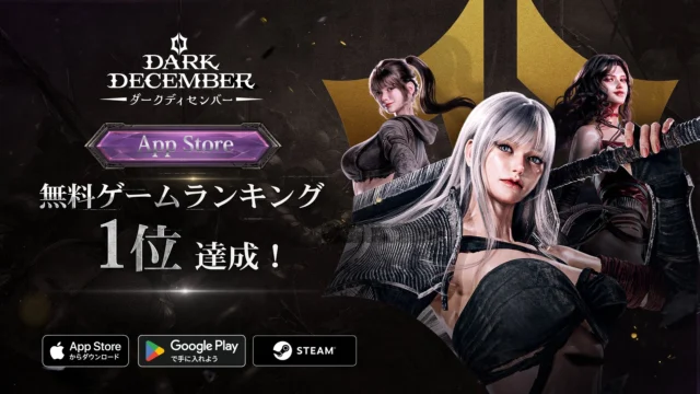 ダークファンタジーアクションRPG『ダークディセンバー』正式サービス初日にApp Store無料ゲームランキング1位達成!