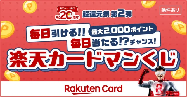 楽天カード20周年記念! 毎日最大2,000ポイントが当たるくじキャンペーン開催
