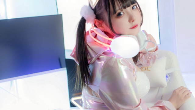 セクシーすぎるゲーミングバニー! いあ、エナメル素材の白バニーガールコスプレで魅惑的なポーズを披露