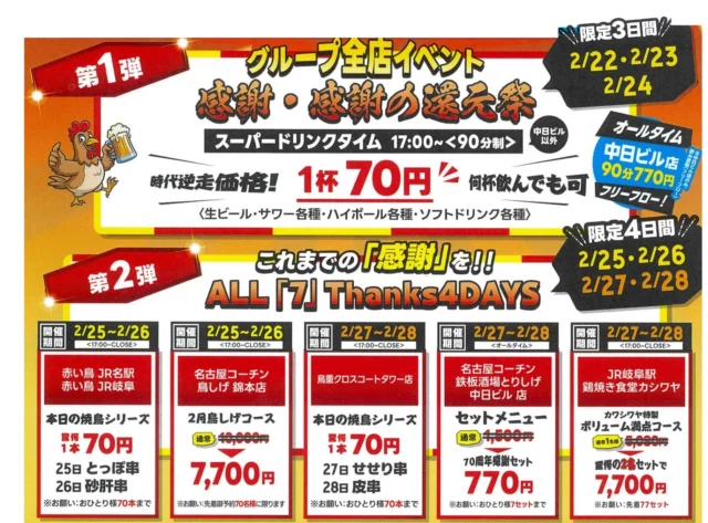 生ビール1杯70円! 創業70周年の鳥重商店が2月22日から「大創業祭」を開催