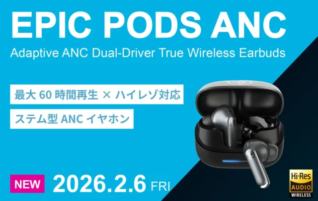 最大60時間再生のハイレゾイヤホン『Epic Pods ANC』が2月6日より販売開始! デュアルドライバーとアダプティブノイズキャンセリングで高音質を実現